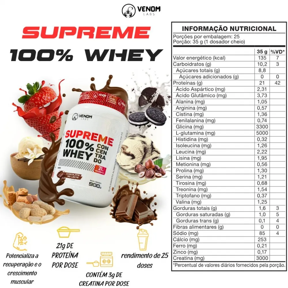 Supreme 100% Whey Concentrado 900g Pote (3g creatina por dose) – Venom Labs